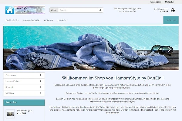 Der neue Webshop wurde für zwei nebenberuflich aktiv gewordene Liebhaber und Anbieter von Hamamtüchern, naturreine Duftseifen sowie orientalische Keramikkunst, Windlichter und Lampen erstellt.